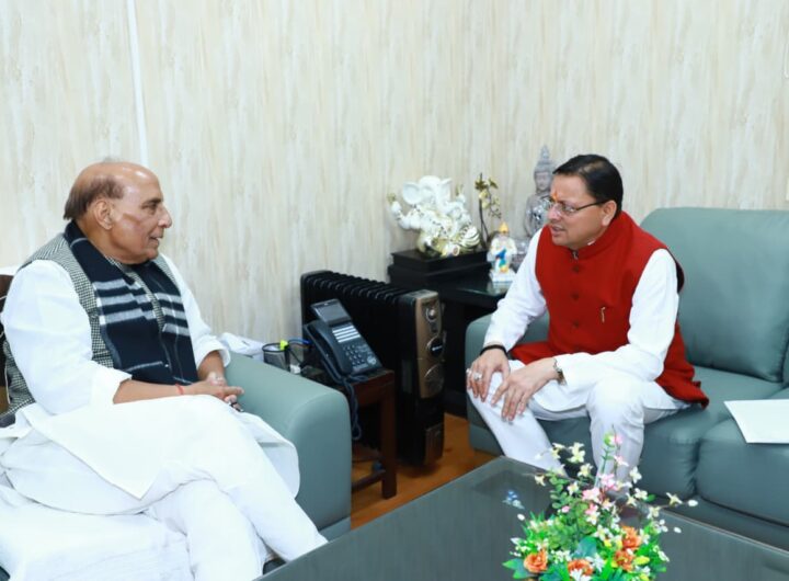 मुख्यमंत्री पुष्कर सिंह धामी ने नई दिल्ली में केंद्रीय रक्षा मंत्री राजनाथ सिंह से शिष्टाचार भेंट की