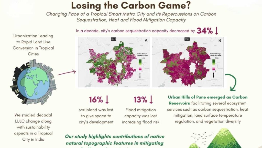 यह स्टडी पुणे के कुदरती इलाकों, यानी यहां की पहाड़ियों, नदियों और वेटलैंड्स को बचाए रखने की अहमियत उजागर करती है, जो पारंपरिक रूप से कार्बन एमिशन, गर्मी और बाढ़ को कम करने वाले कुदरती सुरक्षा कवच की तरह काम करते रहे हैं।