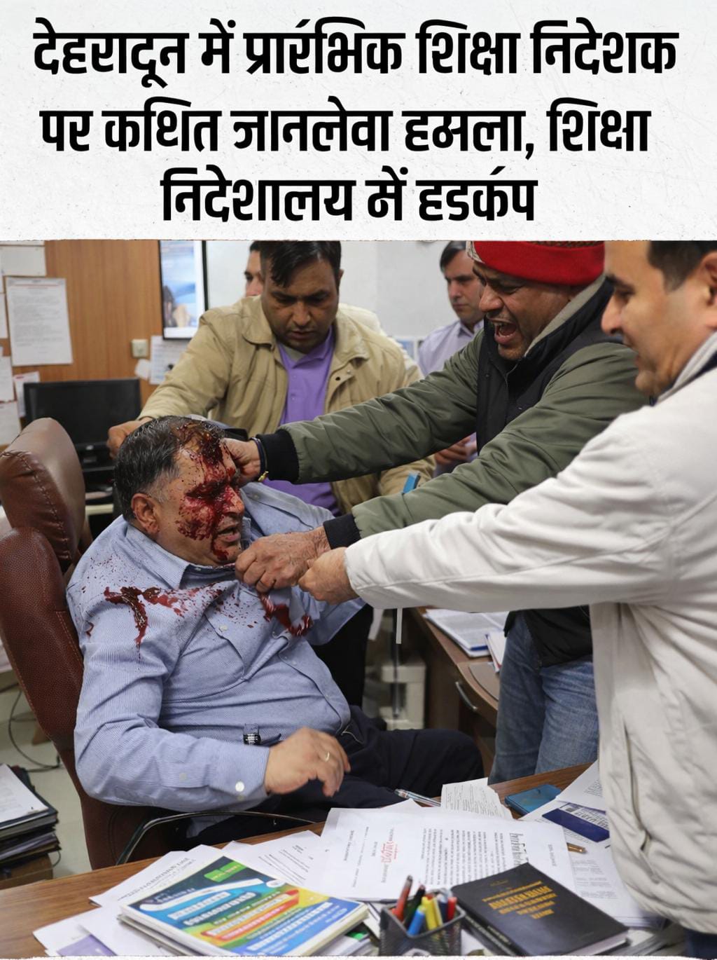 प्राप्त जानकारी के अनुसार, अशासकीय विद्यालयों से जुड़े कुछ प्रबंधन प्रतिनिधि अपनी मांगों को लेकर शिक्षा निदेशालय पहुंचे थे। इसी दौरान प्रतिनिधियों और विभागीय कार्मिकों के बीच तीखी नोकझोंक हुई, जो देखते ही देखते विवाद में बदल गई। आरोप है कि स्थिति बिगड़ने पर कुछ लोगों ने निदेशक पर हमला कर दिया।