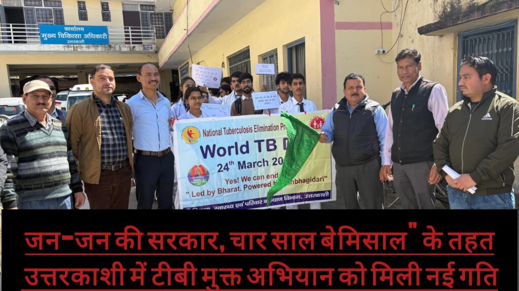 “जन-जन की सरकार, चार साल बेमिसाल” कार्यक्रम के अंतर्गत स्वास्थ्य विभाग उत्तरकाशी द्वारा विश्व क्षयरोग दिवस के अवसर पर जनपद भर में दूसरे दिन भी विभिन्न जागरूकता एवं सम्मान कार्यक्रमों का आयोजन किया गया। कार्यक्रम की अध्यक्षता मुख्य चिकित्सा अधिकारी डॉ. बी.एस. रावत ने की।