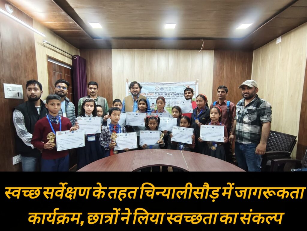 नगर पालिका परिषद चिन्यालीसौड़ द्वारा स्वच्छ सर्वेक्षण अभियान के अंतर्गत स्वच्छता के प्रति जागरूकता बढ़ाने के उद्देश्य से एक विशेष कार्यक्रम का आयोजन किया गया। पालिका सभागार में आयोजित इस कार्यक्रम में छात्र-छात्राओं के लिए निबंध प्रतियोगिता, स्वच्छता चित्रकला प्रतियोगिता तथा स्वच्छता शपथ समारोह का आयोजन किया गया।