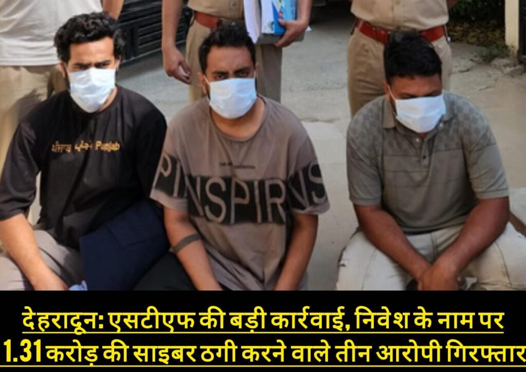 देहरादून में साइबर अपराध के खिलाफ चलाए जा रहे अभियान के तहत स्पेशल टास्क फोर्स (एसटीएफ) को बड़ी सफलता हाथ लगी है। एसटीएफ ने निवेश के नाम पर करीब 1.31 करोड़ रुपये की ठगी करने वाले तीन शातिर आरोपियों को गिरफ्तार किया है।