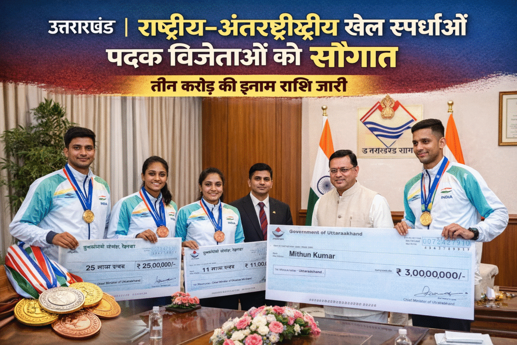 उत्तराखंड सरकार ने खेल प्रतिभाओं को प्रोत्साहित करने की दिशा में एक महत्वपूर्ण कदम उठाया है। राज्य सरकार द्वारा राष्ट्रीय और अंतर्राष्ट्रीय स्तर पर उत्कृष्ट प्रदर्शन करने वाले खिलाड़ियों को सम्मानित करने के लिए करोड़ों रुपये की इनाम राशि जारी की गई है। इस पहल के तहत अंतर्राष्ट्रीय प्रतियोगिताओं में स्वर्ण पदक जीतने वाले खिलाड़ियों को तीन करोड़ रुपये तक की प्रोत्साहन राशि देने का प्रावधान किया गया है।