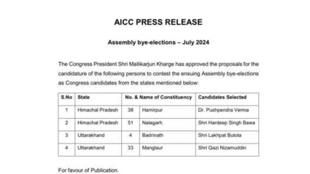 Breaking: कांग्रेस ने उप चुनाव को लेकर की प्रत्याशी की लिस्ट जारी…