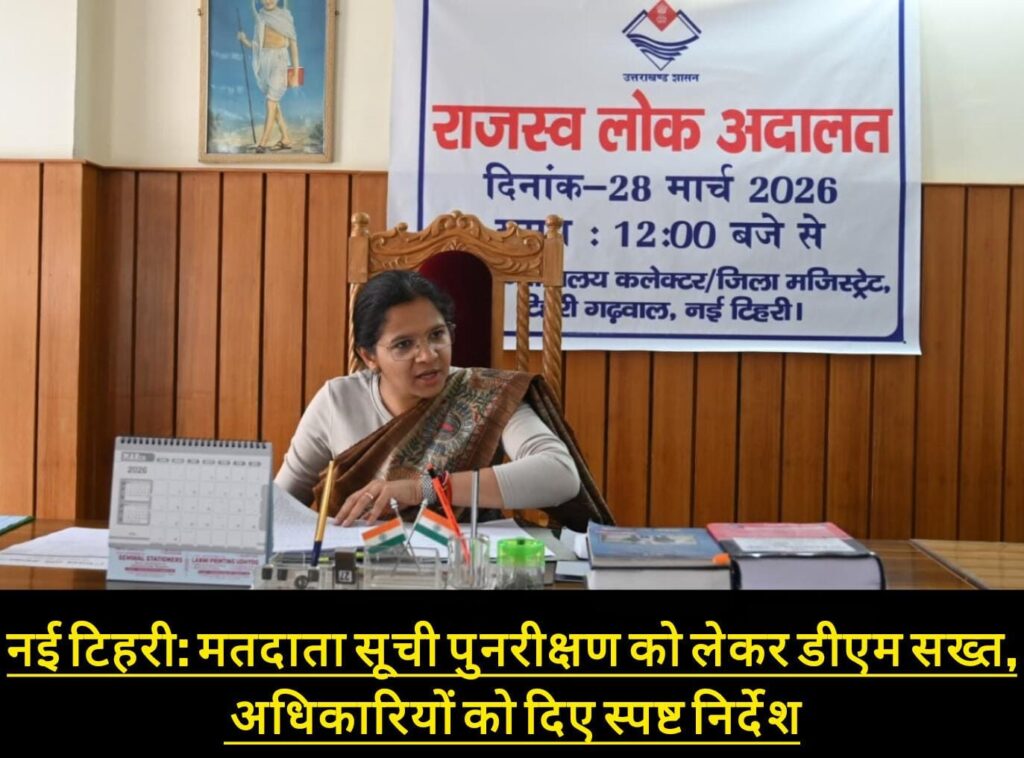 नई टिहरी। जिलाधिकारी एवं जिला निर्वाचन अधिकारी नितिका खण्डेलवाल की अध्यक्षता में कलेक्ट्रेट सभागार में भारत निर्वाचन आयोग द्वारा संचालित फोटोयुक्त विधानसभा निर्वाचक नामावलियों के विशेष गहन पुनरीक्षण कार्यक्रम को सुव्यवस्थित एवं सफल बनाने हेतु जनपद स्तर पर नामित नोडल अधिकारियों की महत्वपूर्ण बैठक आयोजित की गई।