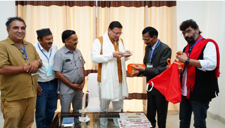 गैरसैण। मुख्यमंत्री पुष्कर सिंह धामी से गुरुवार को गैरसैंण (भराड़ीसैंण) स्थित मुख्यमंत्री आवास में जनपद चमोली के विभिन्न पत्रकार संगठनों के प्रतिनिधियों, वरिष्ठ पत्रकारों के शिष्टमंडल ने शिष्टाचार भेंट की। इस दौरान मुख्यमंत्री ने पत्रकारों से विभिन्न विषयों पर चर्चा की। मुख्यमंत्री श्री धामी ने पत्रकारों की माँग पर गैरसैंण (भराड़ीसैंण) में पत्रकारों के लिये रेस्टहाउस बनाए जाने की घोषणा की। मुख्यमंत्री ने महानिदेशक सूचना को निर्देशित किया कि इस संबंध में तत्काल कार्ययोजना तैयार किया जाए।