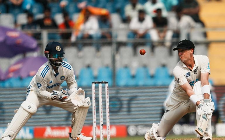 भारत और न्यूजीलैंड के बीच तीसरा टेस्ट मुंबई के वानखेड़े स्टेडियम में खेला जा रहा है। पहले दिन मैच खत्म होने तक भारत का स्कोर 4 विकेट पर 86 रन है। न्यूजीलैंड ने टॉस जीतकर बैटिंग चुनी है। पहले दिन न्यूजीलैंड की पारी 235 रन के स्कोर पर सिमट गई। भारत के लिए गेंदबाजी में रविंद्र जडेजा ने 5 विकेट अपने नाम किए। इसके अलावा वाशिंगटन सुंदर के खाते में 4 विकेट आए जबकि आकाशदीप ने 1 विकेट लिए।