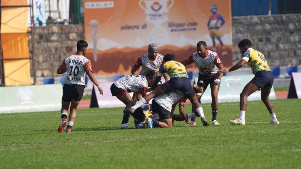 महाराणा प्रताप स्पोर्ट्स कॉलेज के गंगा एथलेटिक्स स्टेडियम में आज हरियाणा पुरुष और ओडिशा महिला रग्बी सेवेंस टीमों ने राष्ट्रीय खेल में लगातार तीसरी बार स्वर्ण पदक जीतकर ऐतिहासिक हैट्रिक पूरी की। हरियाणा ने पुरुषों के फाइनल में महाराष्ट्र को 22-7 से हराया, जबकि ओडिशा की महिला टीम ने बिहार को 29-5 से पराजित किया।