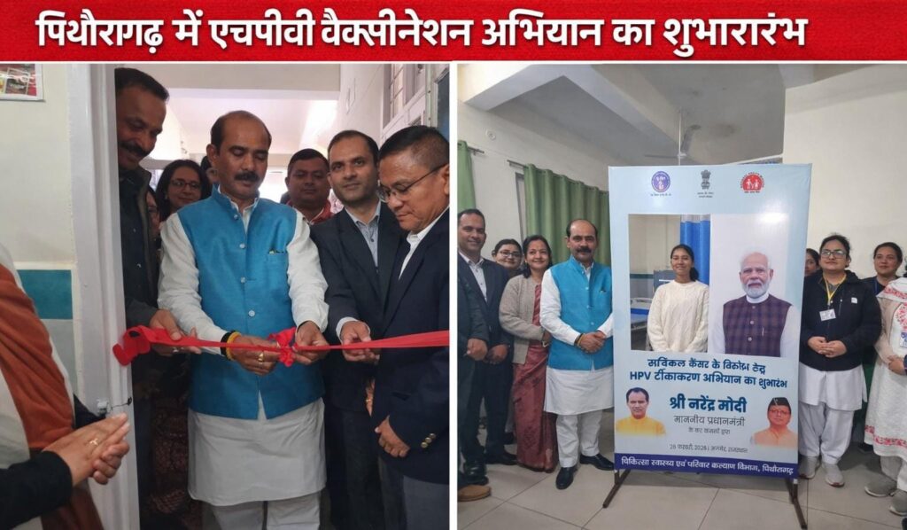 पिथौरागढ़। चिकित्सा स्वास्थ्य एवं परिवार कल्याण विभाग, पिथौरागढ़ द्वारा सर्वाइकल कैंसर की रोकथाम के उद्देश्य से एचपीवी (ह्यूमन पैपिलोमा वायरस) वैक्सीनेशन अभियान का शुभारंभ शुक्रवार प्रातः 11 बजे महिला अस्पताल के सभागार में विधिवत रूप से किया गया। कार्यक्रम का उद्घाटन जिलाधिकारी, मुख्य विकास अधिकारी, सांसद अजय टम्टा, दर्जा मंत्री गणेश भंडारी, मेयर कल्पना देवलाल, भाजपा जिलाध्यक्ष गिरीश जोशी, मुख्य चिकित्सा अधिकारी डॉ. एस.एस. नबियाल तथा प्रमुख चिकित्सा अधीक्षक डॉ. भगीरथी गर्बयाल ने संयुक्त रूप से रिबन काटकर किया।