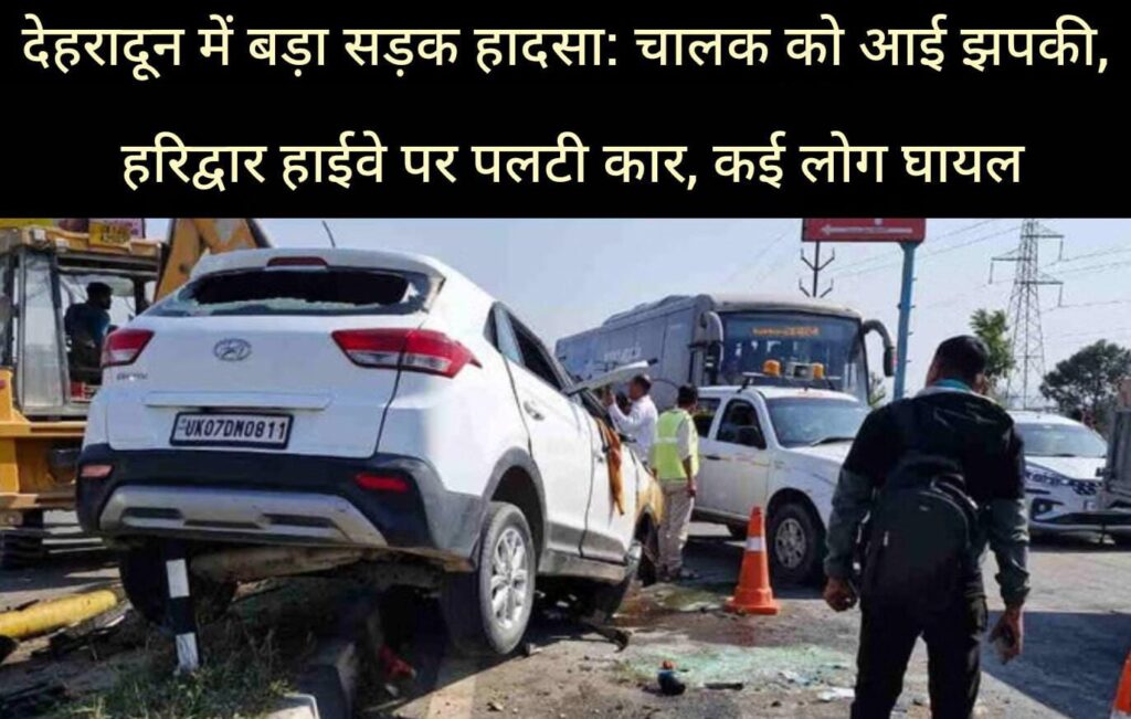 देहरादून से बड़ी खबर सामने आई है। देहरादून–हरिद्वार हाईवे पर सोमवार दोपहर एक दर्दनाक सड़क हादसा हो गया। बताया जा रहा है कि तेज रफ्तार कार चला रहे चालक को अचानक झपकी आ गई, जिसके चलते वाहन अनियंत्रित होकर डिवाइडर से टकराया और सड़क किनारे पलट गया।