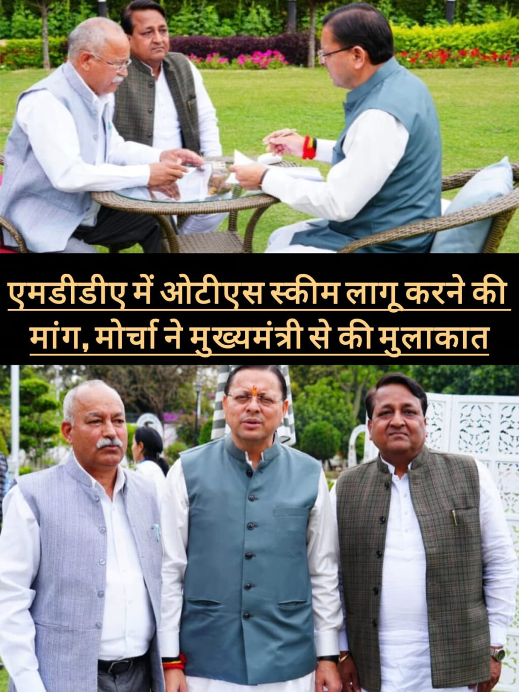 विकासनगर। जन संघर्ष मोर्चा के प्रतिनिधिमंडल ने मोर्चा अध्यक्ष एवं जीएमवीएन के पूर्व उपाध्यक्ष रघुनाथ सिंह नेगी के नेतृत्व में हाल ही में मुख्यमंत्री पुष्कर सिंह धामी से मुलाकात कर मसूरी देहरादून विकास प्राधिकरण (एमडीडीए) में वन टाइम सेटलमेंट (ओटीएस) योजना लागू करने की मांग उठाई।