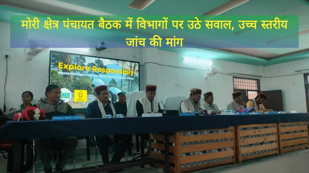 पुरोला (उत्तरकाशी)। मोरी क्षेत्र पंचायत की बैठक गुरुवार को ब्लॉक प्रमुख रणदेव सिंह राणा की अध्यक्षता में आयोजित की गई। बैठक में क्षेत्रीय विधायक दुर्गेश्वर लाल तथा मुख्य विकास अधिकारी जय भारत सिंह भी उपस्थित रहे।