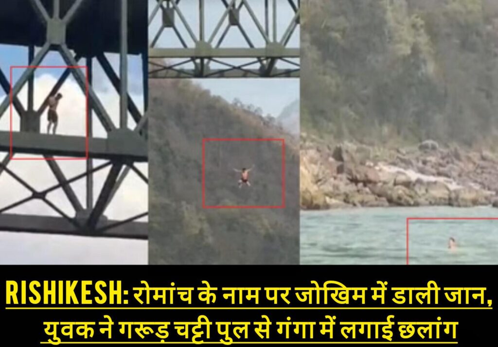 उत्तराखंड के Rishikesh से एक हैरान करने वाला वीडियो सोशल मीडिया पर तेजी से वायरल हो रहा है। वायरल वीडियो में एक युवक को गरुड़ चट्टी पुल से सीधे गंगा नदी में छलांग लगाते हुए देखा जा सकता है।