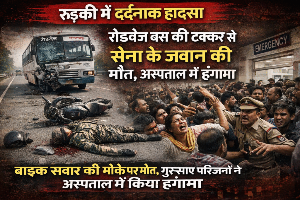 रुड़की से एक बेहद दुखद सड़क हादसे की खबर सामने आई है, जहां हाईवे पर रोडवेज बस की साइड लगने से बाइक सवार एक सेना के जवान की मौके पर ही मौत हो गई। इस घटना के बाद अस्पताल में परिजनों और स्थानीय लोगों ने जमकर हंगामा किया।