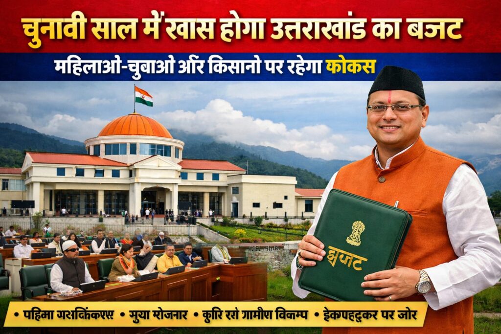 गैरसैंण/देहरादून। उत्तराखंड विधानसभा के बजट सत्र में मुख्यमंत्री Pushkar Singh Dhami की सरकार वित्तीय वर्ष 2026–27 का बजट पेश करने जा रही है। आगामी 2027 विधानसभा चुनाव को देखते हुए इस बार का बजट काफी अहम माना जा रहा है और इसमें महिलाओं, युवाओं, किसानों और ग्रामीण अर्थव्यवस्था पर विशेष फोकस रहने की संभावना है।
