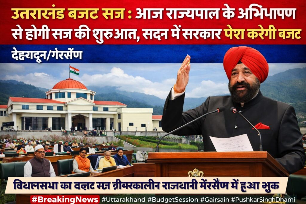 देहरादून/गैरसैंण। उत्तराखंड विधानसभा का बजट सत्र सोमवार से राज्य की ग्रीष्मकालीन राजधानी गैरसैंण (भराड़ीसैंण) स्थित विधानसभा भवन में शुरू हो गया। सत्र की शुरुआत राज्यपाल गुरमीत सिंह के अभिभाषण से होगी, जिसमें सरकार की उपलब्धियों, नीतियों और आने वाले समय की योजनाओं का खाका पेश किया जाएगा।
